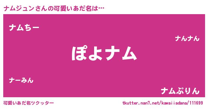 | 恥ずかしいあだ名 | 『ナムっちょ』『プリティーナムジュン』 |