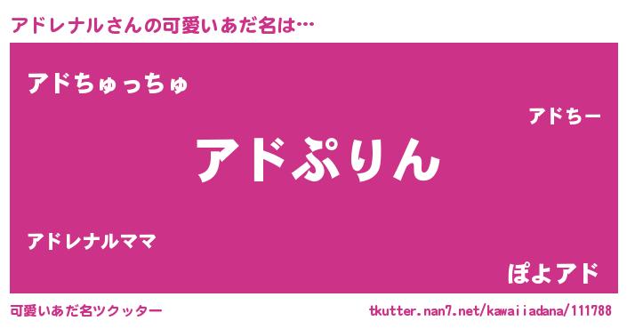 | 女子向けラノベタイトル風あだ名 | 『アドレナルの玉の輿計画!』 |