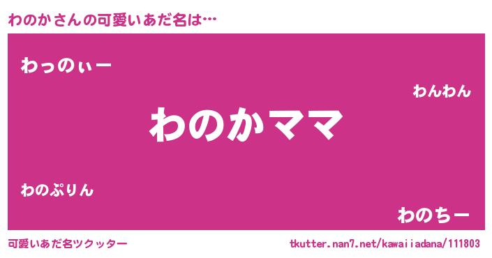 | 意味不明あだ名 | 『永久保存わのか』『わのかフォーエバー』 |
