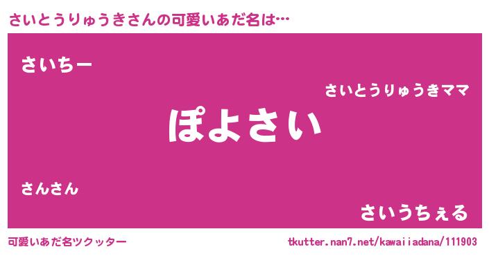 | 意味不明あだ名 | 『住所不定無職さいとうりゅうき(89歳)』 |
