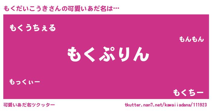 | ヘコむあだ名 | 『豆乳』『もくにー』『もくぷりん』 |
