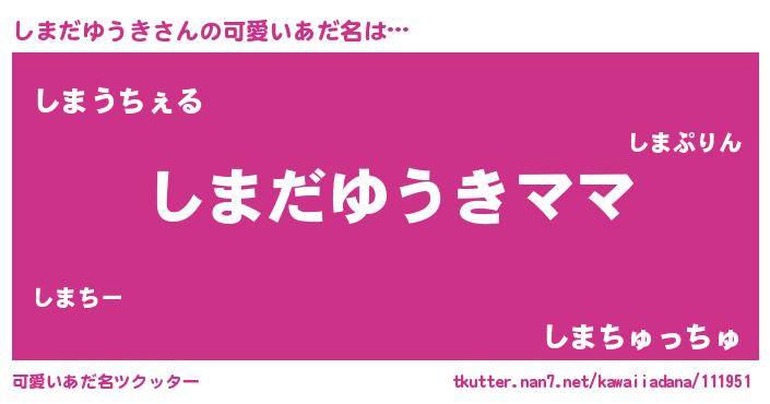 | ヘコむあだ名 | 『しまだゆうき(苦笑)』『なまこ酢』 |
