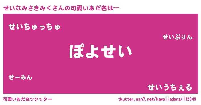 | 意味不明あだ名 | 『住所不定無職せいなみさきみく(8歳)』 |