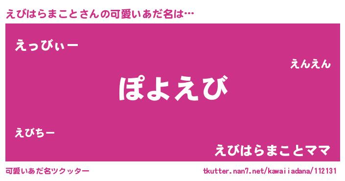 | ヘコむあだ名 | 『えびっ子』『えびはらまこと(笑)』 |