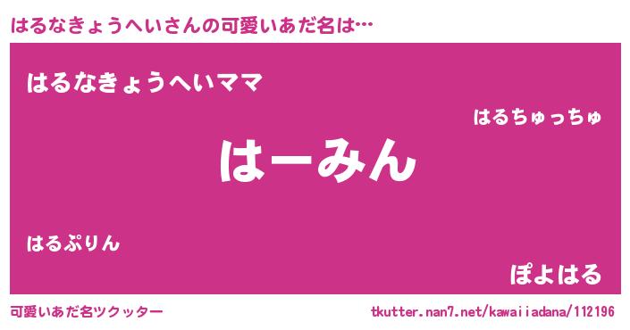 | 意味不明あだ名 | 『永久保存はるなきょうへい』 |