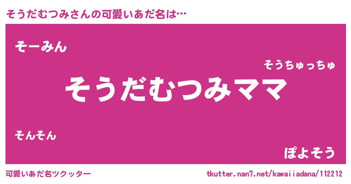ヘコむあだ名 | 『そうだむつみ(小並感)』『そうもー』 |