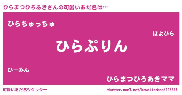 | 肩書あだ名 | 『ひらまつひろあき中佐』 |
