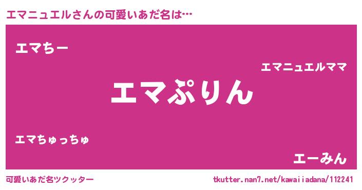 | 女子向けラノベタイトル風あだ名 | 『エマニュエルの玉の輿計画!』 |