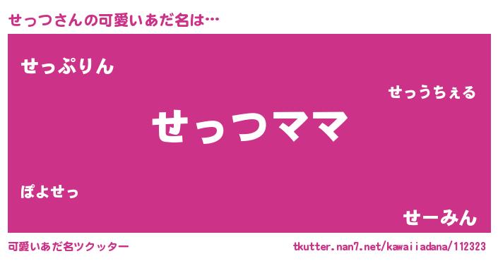 | ヘコむあだ名 | 『せっつ(笑)』『せっもー』『つくし』 |