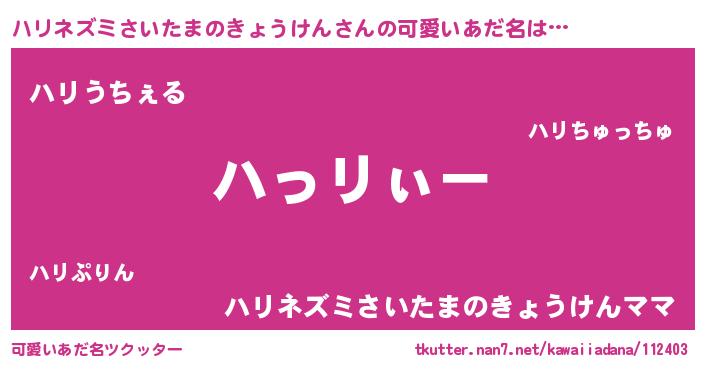 | 意味不明あだ名 | 『とにかく怪しいハリネズミさいたまのきょうけん』 |
