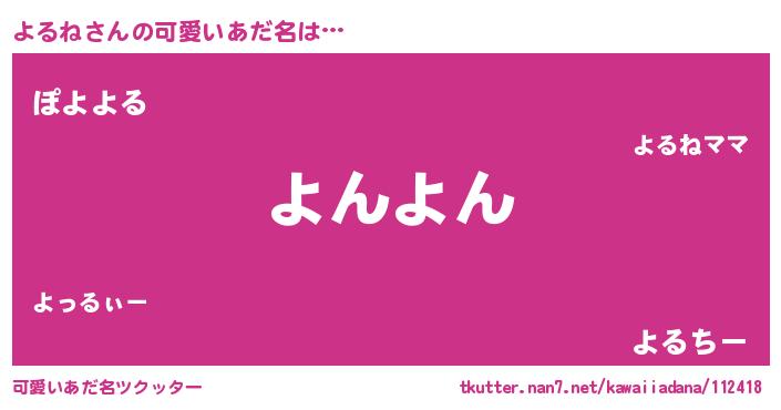 | 男性向けラノベタイトル風あだ名 | 『よるねの憂鬱』『はたらくよるねさま!』 |
