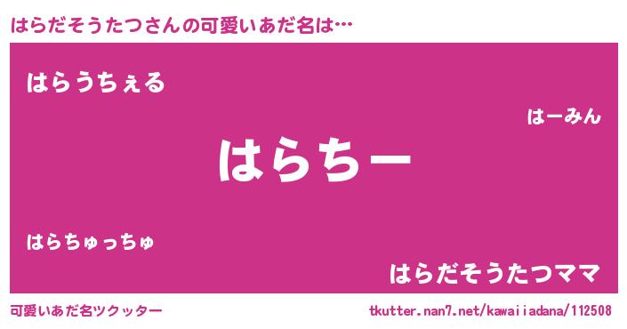 ヘコむあだ名 | 『なまこ酢』『はらだそうたつ(爆)』 |