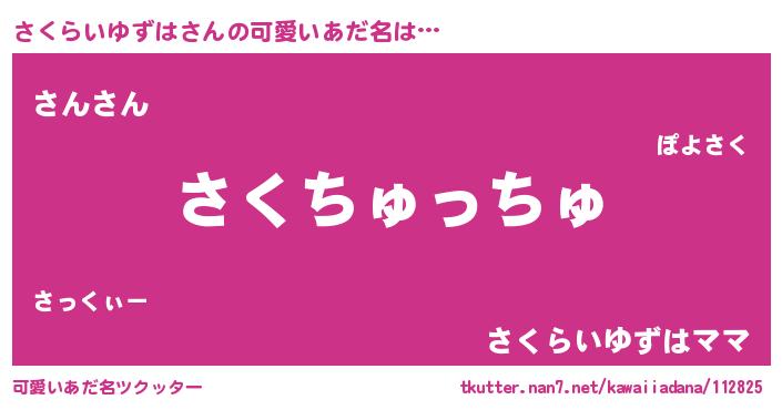 | ヘコむあだ名 | 『さくふぇ~』『さくらいゆずは(爆)』 |
