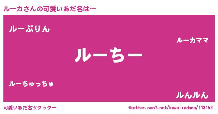 | 恥ずかしいあだ名 | 『ルーっちょ』『プリティールーカ』 |