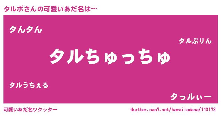 | 女子向けラノベタイトル風あだ名 | 『タルボ恋絵巻』『タルボ様がみてる』 |