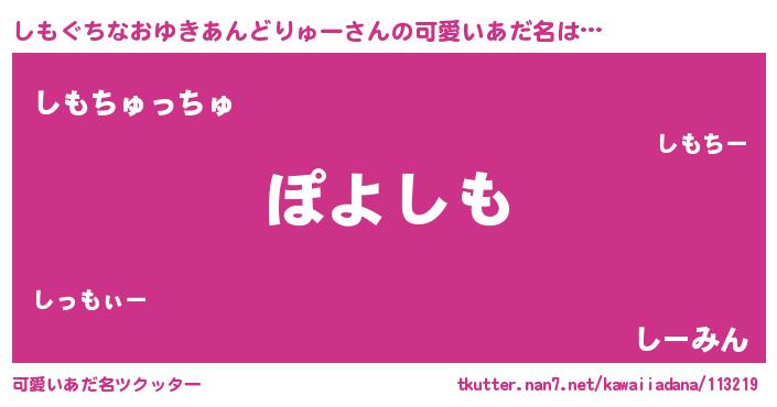 | 意味不明あだ名 | 『住所不定無職しもぐちなおゆきあんどりゅー(50歳)』 |