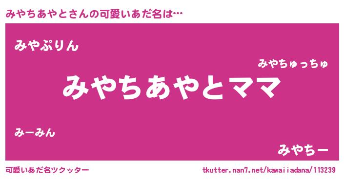 | 男性向けラノベタイトル風あだ名 | 『みやちあやとという概念が存在しない退屈な世界 』 |