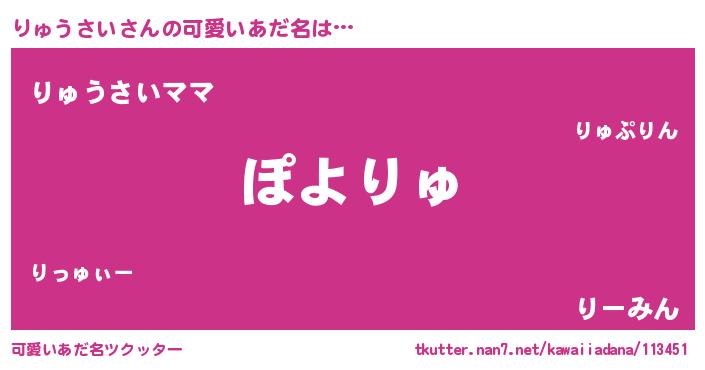 | 意味不明あだ名 | 『住所不定無職りゅうさい(13歳)』 |