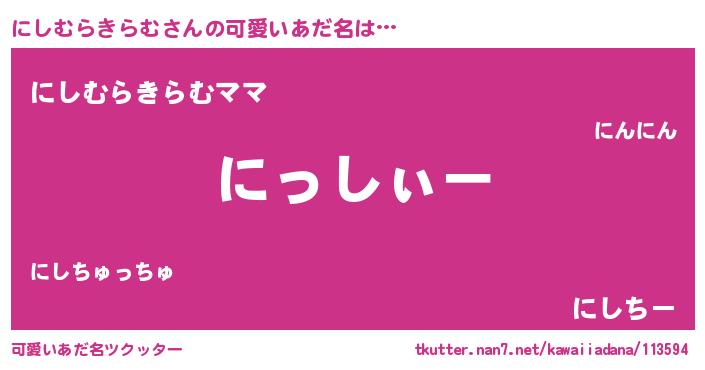 | 男性向けラノベタイトル風あだ名 | 『にしむらきらむの嫁は女の子じゃないと思った?』 |