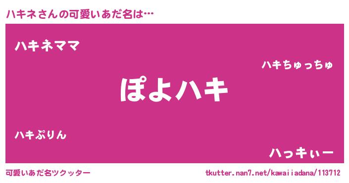 | 意味不明あだ名 | 『住所不定無職ハキネ(6歳)』 |
