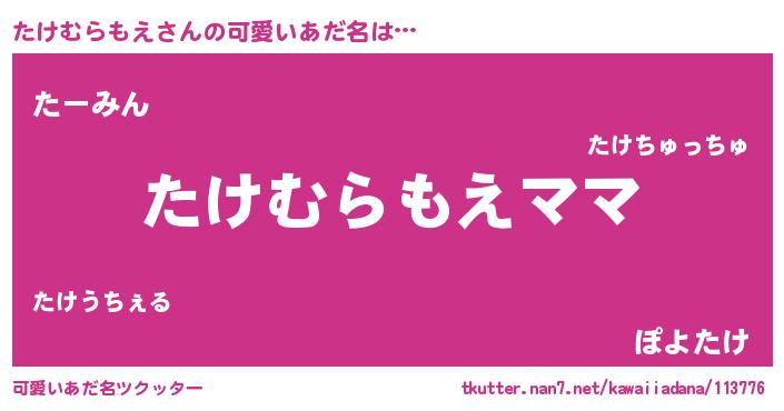 | ヘコむあだ名 | 『たけむらもえ(小並感)』『たけ太郎』 |