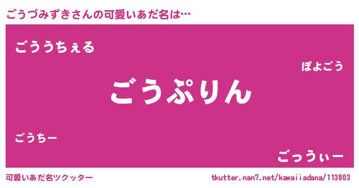| 男性向けラノベタイトル風あだ名 | 『転生したらごうづみずきだった件』 |