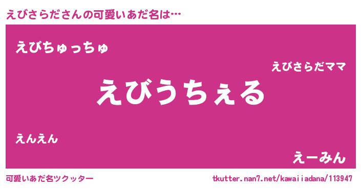 | ヘコむあだ名 | 『えびさらだ(笑)』『えびにゅー』 |