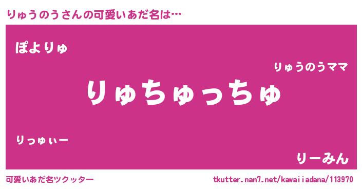 | ヘコむあだ名 | 『りゅうのう(苦笑)』『りゅぷりん』 |
