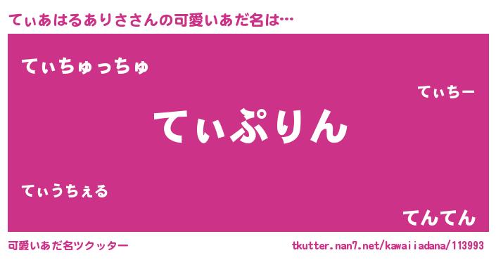 | 欧米人風あだ名 | 『トリンドルてぃあはるありさ』 |