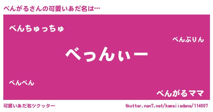 | 意味不明あだ名 | 『とにかく怪しいべんがる』 |