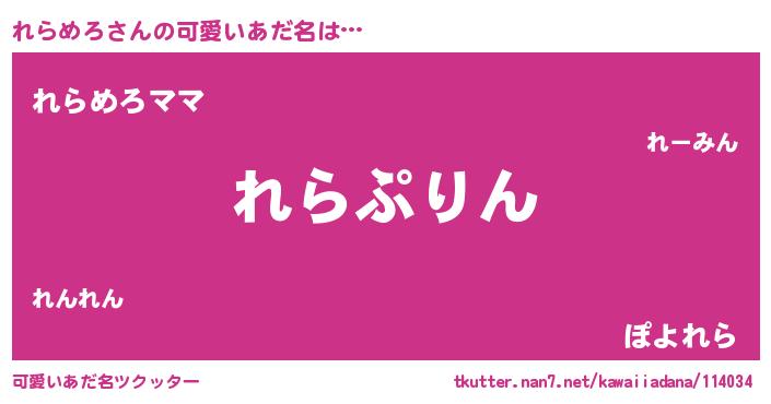 | ヘコむあだ名 | 『れらめろ(苦笑)』『れらにゅー』 |