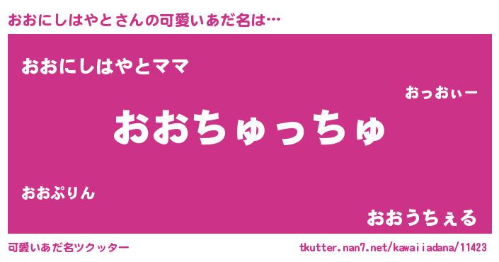 | ヘコむあだ名 | 『おおにしはやと(爆)』『おおぷりん』 |