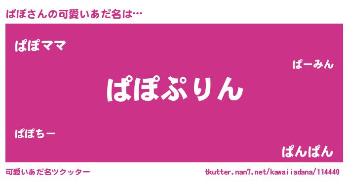 | 男性向けラノベタイトル風あだ名 | 『ぱぽ~年齢イコール彼女いない歴の魔法使い~』 |