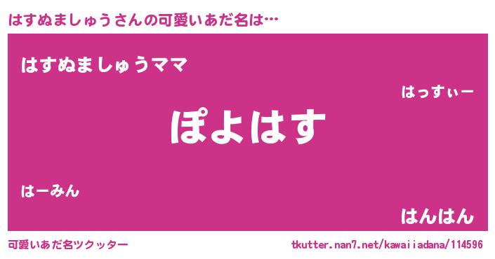| ヘコむあだ名 | 『はすぬましゅう(震え声)』『はすにゅー』 |