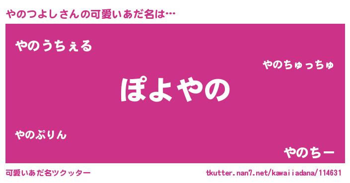 | ヘコむあだ名 | 『豆乳』『やのつよし(笑)』『やのを』 |