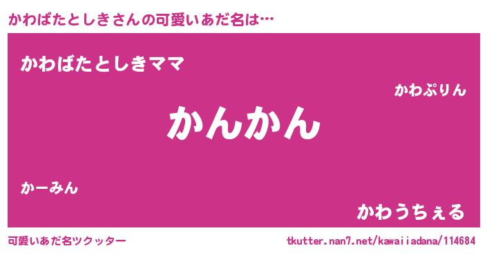 | ヘコむあだ名 | 『かわもー』『かわばたとしき(笑)』 |