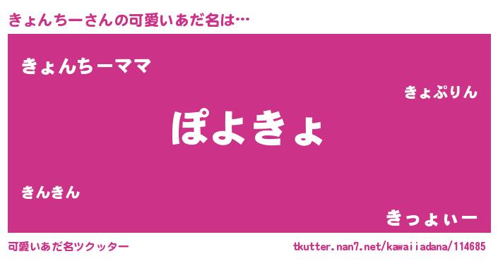 | ヘコむあだ名 | 『きょんちー(爆)』『きょを』『豆乳』 |