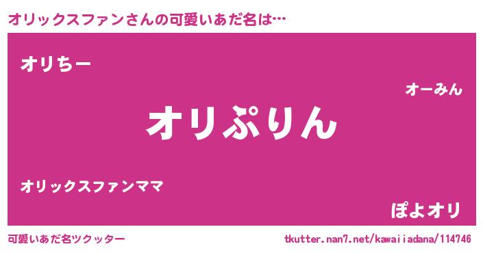 女子向けラノベタイトル風あだ名 | 『オリックスファンの玉の輿計画!』 |