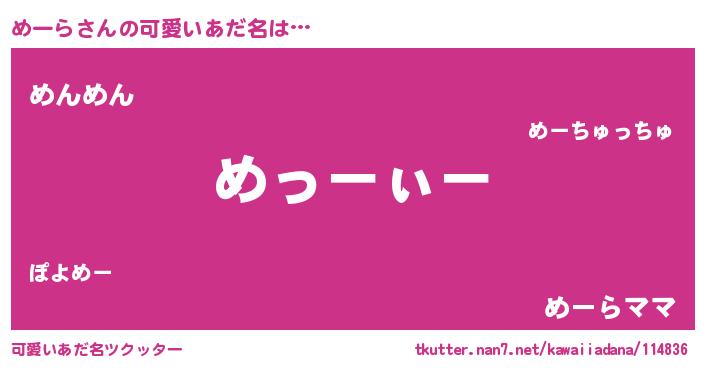 | ヒーロー風カッコイイあだ名 | 『魔戒騎士メー』『スーパーメーラ』 |