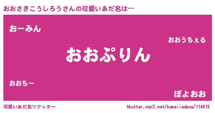 | 男性向けラノベタイトル風あだ名 | 『おおさきこうしろう~年齢イコール彼女いない歴の魔法使い~』 |