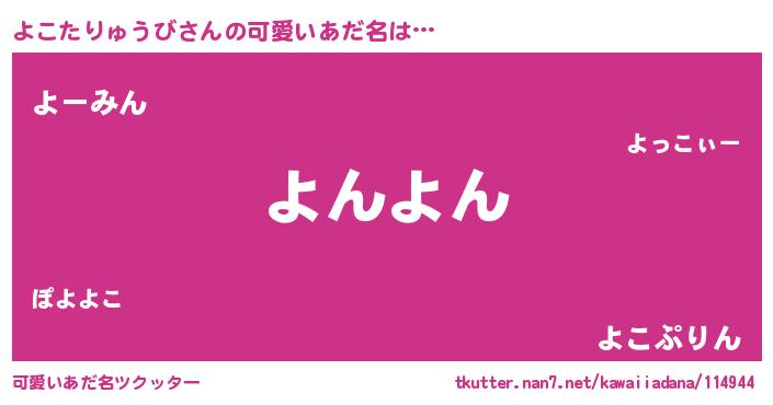 | 恥ずかしいあだ名 | 『プリティーよこたりゅうび』『よこちん』 |