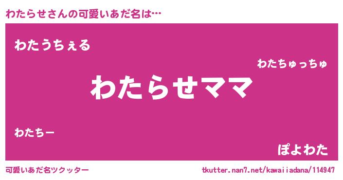 | 意味不明あだ名 | 『永久保存わたらせ』『自称わたらせ』 |