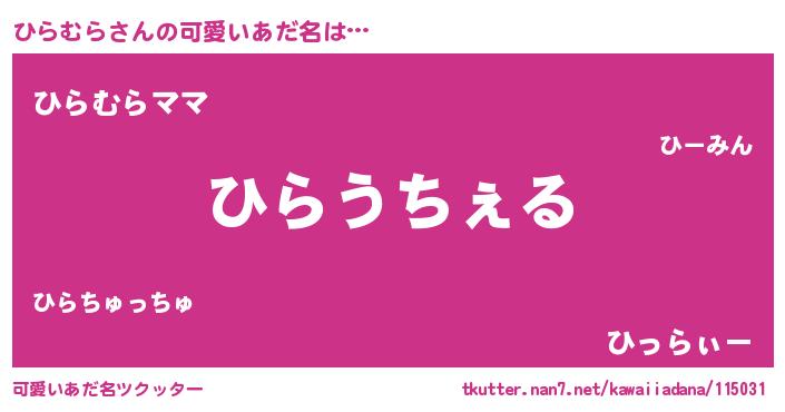 | 意味不明あだ名 | 『自称ひらむら』『永久保存ひらむら』 |