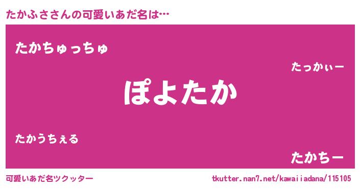 | ヘコむあだ名 | 『牛乳』『たかお』『たかっふぃ~』 |