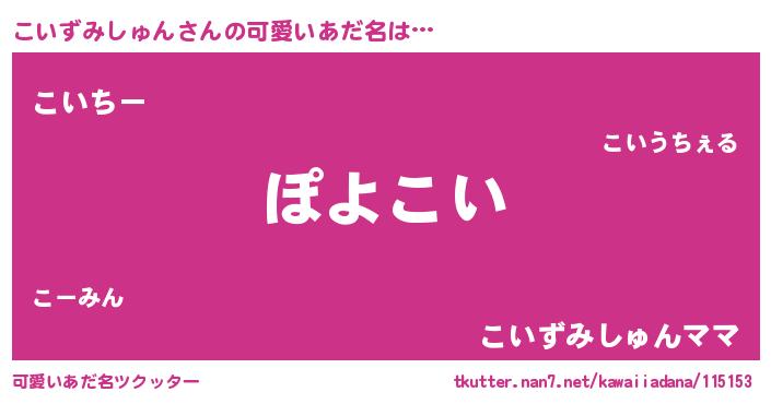 | ヘコむあだ名 | 『豆乳』『こいずみしゅん(笑)』 |
