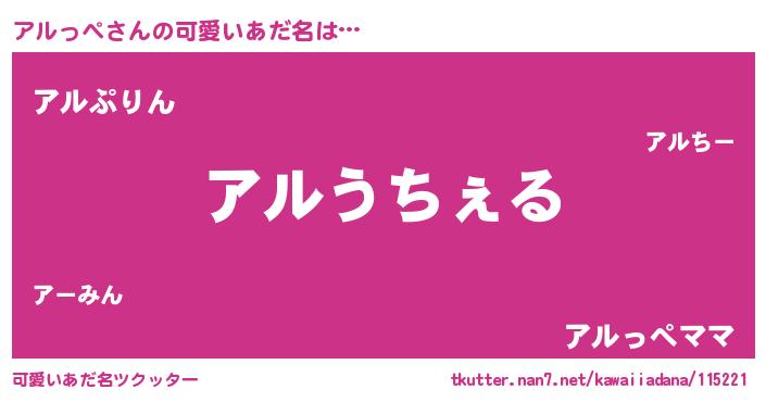 | 恥ずかしいあだ名 | 『アルッペデラックス』『アルちん』 |