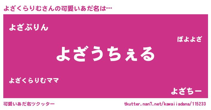 | 恥ずかしいあだ名 | 『ヨザクラリムデラックス』『よざっちょ』 |