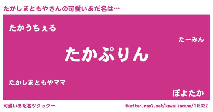 | 女子向けラノベタイトル風あだ名 | 『たかしまともやの玉の輿計画!』 |