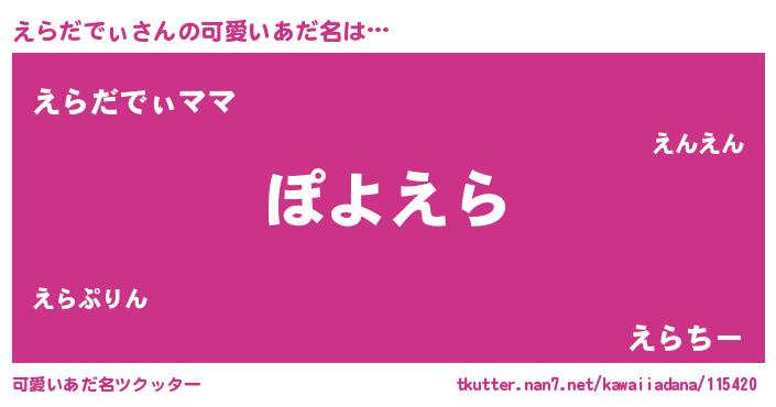 | 男性向けラノベタイトル風あだ名 | 『この素晴らしい世界にえらだでぃを!』 |