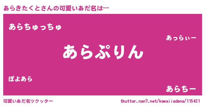 | ヘコむあだ名 | 『つくし』『あらを』『あらっふぃ~』 |